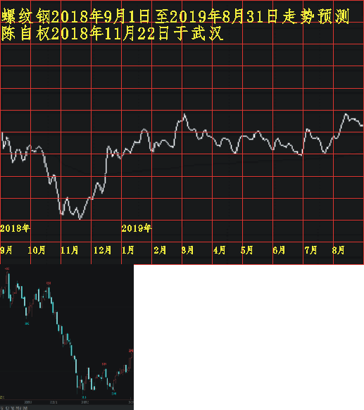 二、铁矿石。两张: 第一张:2018年8月15日研究绘制的铁矿石2018年6月1日至2019年5月31日走势研究。成功捕捉到了2018年11月的低点位。