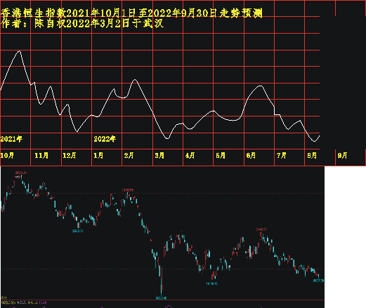 第一张:    2022年3月2日研究绘制并发布在易数与商战网全球指数栏目的恒生指数2021年10月1日至2022年9月30日走势研究与实际走势对比如下: