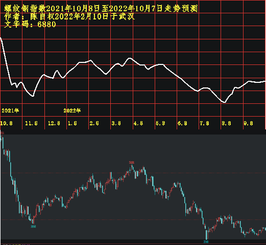 第一张。2022年2月10日研究绘制并发布在易数与商战网期货研究栏目的螺纹钢2021年10月8日至2022年10月7日走势研究与实际走势对比如下: