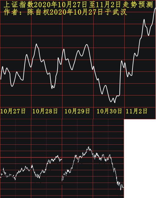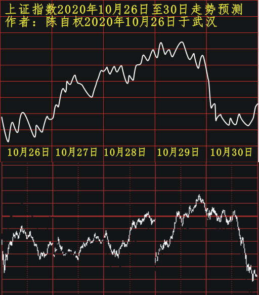 本周发布在易数与商战网会员区两张走势研究图,均表述了周五有较大幅度的回落。10月26日绘制的5日走势研究图于实际走势对比如下:
