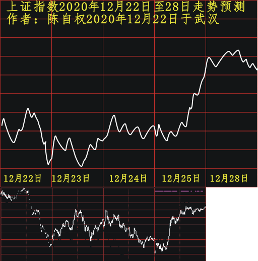 2020年12月22日研究绘制并发布在易数与商战网证券研究栏目的上证指数2020年12月22日至28日走势研究与实际走势对比如下: