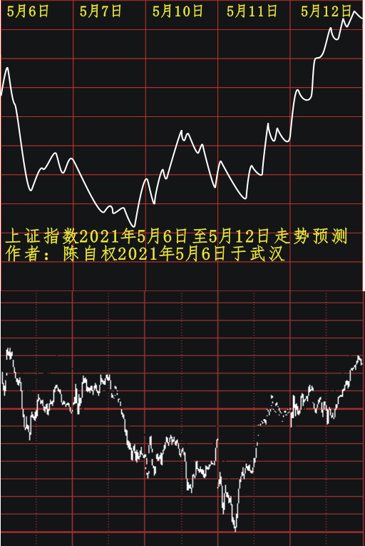 上证指数2021年5月6日至12日走势研究与实际走势对比如下: