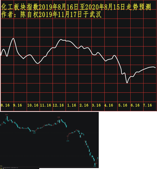 2019年11月17日研究绘制并发布在易数与商战网期货化工板块栏目的化工板块指数2019年8月16日至2020年8月15日走势研究与实际走势对比如下: