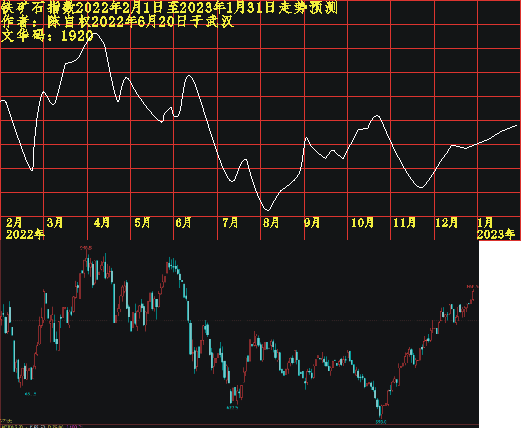 2022年6月20日研究绘制并发布在易数与商战网的铁矿石指数2022年2月1日至2023年1月31日走势研究与实际走势对比如下: